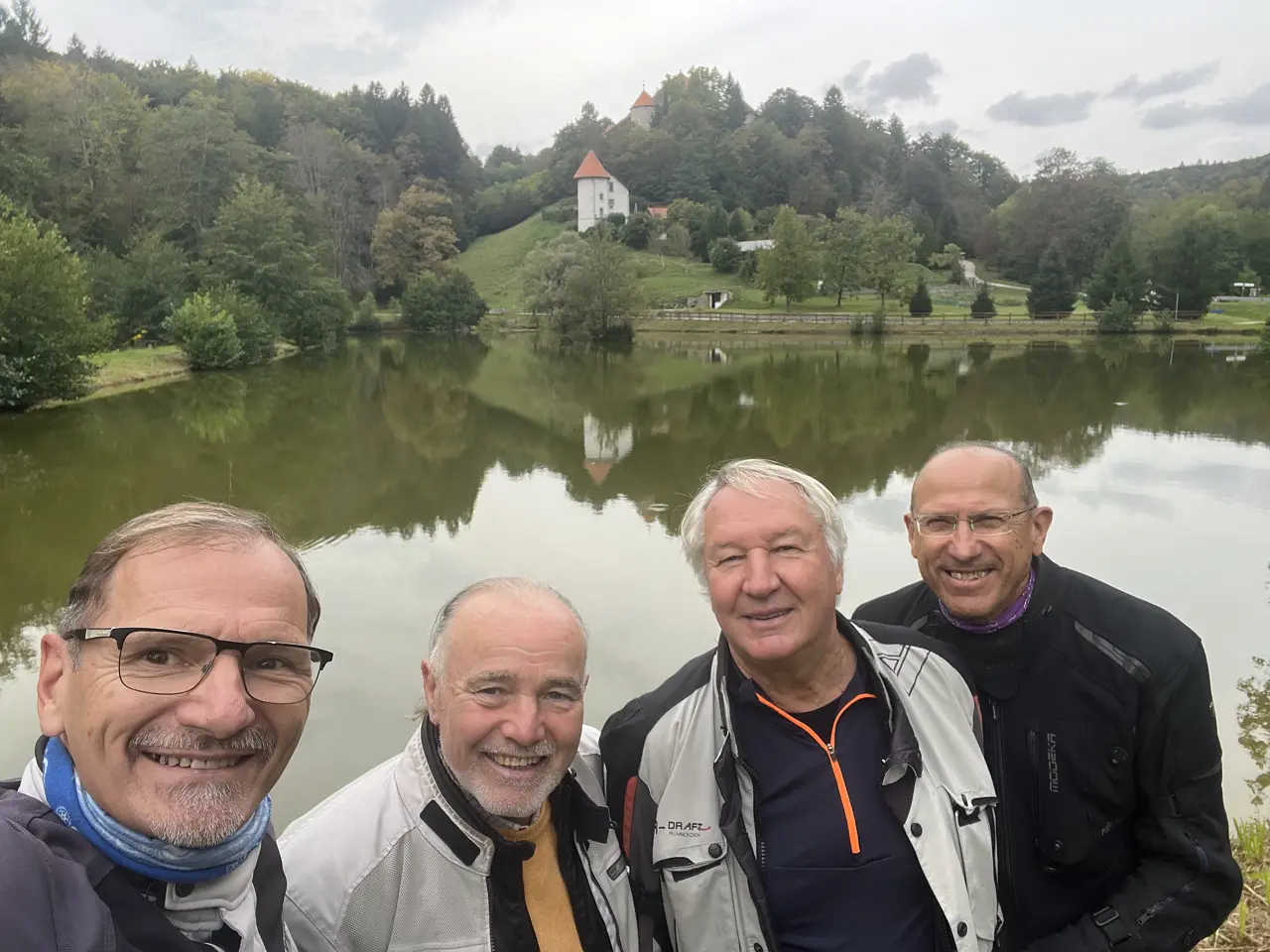 Tokrat smo se vozili po dolini potoka Besnica in se preko Šmartnega pri Litiji, kjer smo si ogledali cerkev, ki so jo na prehodu iz devetnajstega v dvajseto stoletje krajani v neogotskem slogu zgradili v zgolj dveh letih, podali preko Gabrovke in Mokronoga nazaj v Mirno, kjer nas je navdušil pogled na obnovljeni grad, ki se zrcali v bližnjem ribniku. Ponovno smo vozili po idilični cesti, ki ves čas navdušuje bodisi z ovinki ali pa z dih jemajočimi pogledi na polja, gozdove in zelene travnike po katerih se prosto pasejo domače živali. Po prijetnem prijateljskem druženju ob kosilu v Mirni smo se poslovili in odpravili vsak svojemu cilju naproti, že z mislijo na zaključno vožnjo po Jadranski magistrali, ki sledi že čez tri dni.