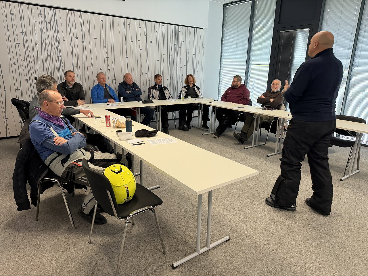 Naše poslanstvo je med drugim tudi povečanje varnosti v prometu in trening varne vožnje ob začetku sezone je konkreten korak v to smer.Intenziven trening smo začeli s predavanjem in razpravo o teoriji varne vožnje, ki se začne že mnogo prej, preden se z motociklom odpravimo na cesto. Osvetlili smo pomen ustreznega psihofizičnega stanja motorista, brezhibnega tehničnega stanja motocikla, poznavanja tehničnih zmožnosti motocikla in vseh njegovih asistenčnih sistemov, ustrezne motoristične opreme ter ustrezne tehnike vožnje. Analizirali smo tudi prometne nesreče lanskega leta v katerih je bil udeležen motorist in ugotovili, da jih je večino motorist tudi povzročil.