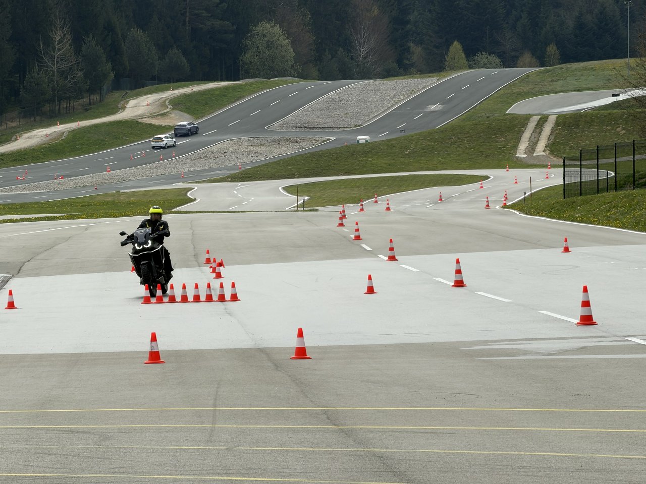 Teoriji je sledil intenzivni trening vožnje po poligonu, kjer smo vadili zavoje s tehniko odrivanja motorja, ki ima v primerjavi s tehniko nagibanja skupaj z motorjem številne prednosti. Tehniko smo nadgradili z uporabe zadnje zavore in jo vadili na poligonu ostrih 180 - stopinjskih zavojev. Zanimivo in zahtevno!Po skupnem kosilu smo trening nadaljevali z izogibanjem oviri, izogibanjem oviri s predhodnim zaviranjem, poligonsko delo pa smo zaključili z zaviranjem do popolne ustavitve motocikla. Ob dolžini zavorne poti nihče ni ostal ravnodušen.Člani IFMR pogosto vozimo v skupini zato sta ustrezna tehnika vožnje in upoštevanje zakonitosti vožnje v skupini za varnost še posebno pomembni zato smo trening varne vožnje zaključili z vožnjo v skupini po cestah okoli Vranskega pod vodstvom in budnim očesom inštruktorja, ki nam je po vožnji podal oceno vožnje in predloge za izboljšave.